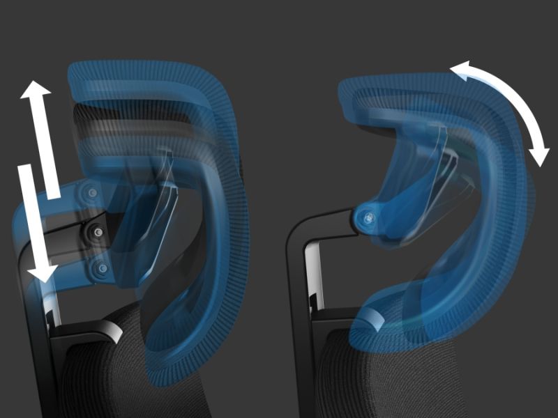 Регулируеми възглавници_TEXT:Three-stage lumbar adjustment, Height and angle adjustable mesh headrest