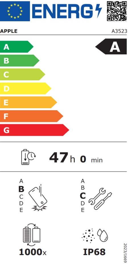 Батерия, mAh:Li-Ion 3998 mAh, Charging: Wired, PD3.2, AVS, 50% in 20 min; 25W wireless MagSafe/Qi2; 4.5W reverse wired