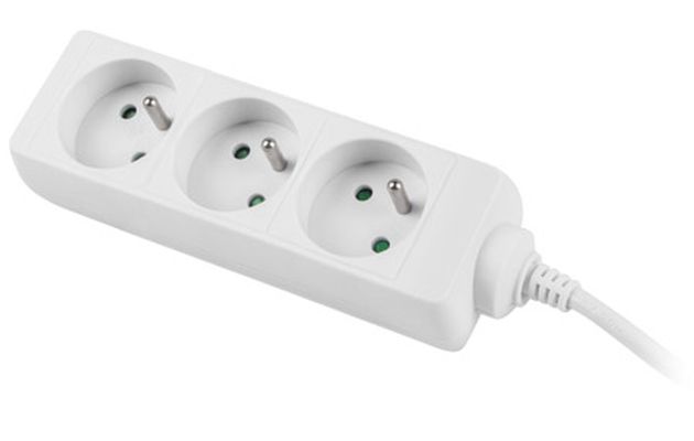 Разклонител Lanberg power strip 3m, 3 sockets, french quality-grade copper cable, white