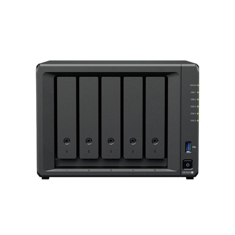 Мрежов сторидж Synology NAS DS1525+, за 5 диска, AMD Ryzen V1500B, 8GB DDR4 SODIMM