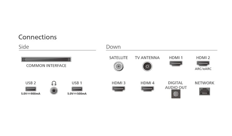 4 HDMI, 2 USB 2.0, RJ-45, Digital audio out optical
