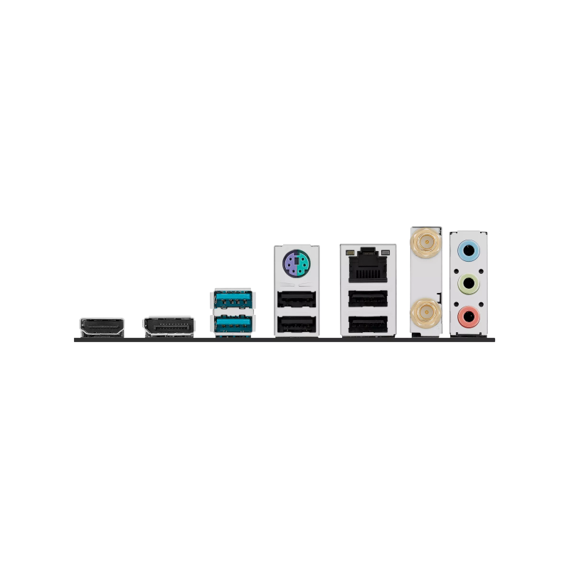 2 x USB 10Gbps ports (2 x Type-A);4 x USB 2.0 ports (4 x Type-A);1 x DisplayPort;1 x HDMI™ port;1 x Wi-Fi module;1 x Intel® 1Gb Ethernet port;3 x Audio jacks;1 x PS/2 keyboard/mouse combo port
